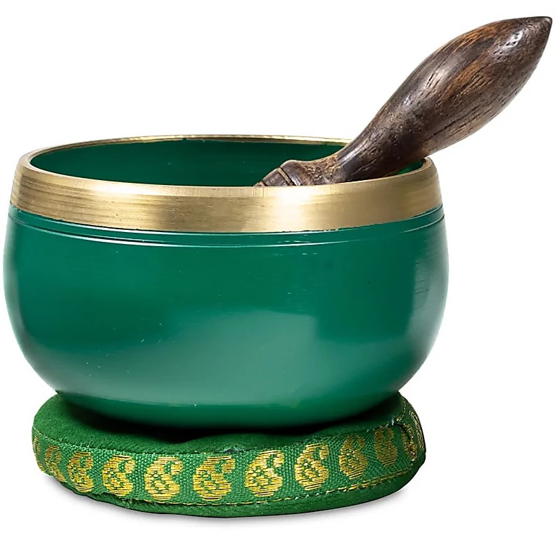 Bol chantant couleur vert et symbole du Chakra du Coeur