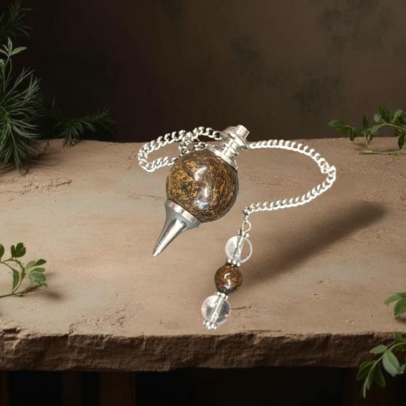 Pendule Sephoroton en Bronzite avec chainette personnalisée avec 3 perles (bronzite + cristal de roche)